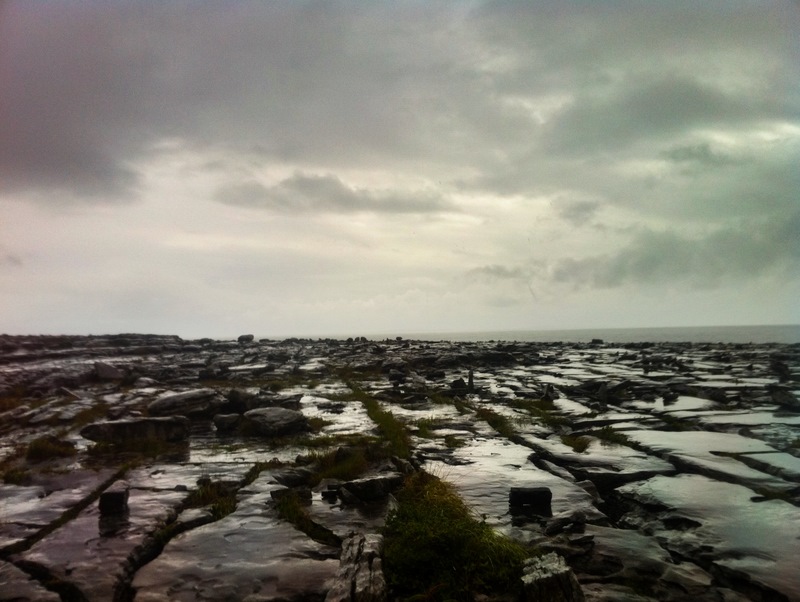 After lunch we did a big drive around in a circuit looking for castles and ruins. We saw the dolmen, a stone fort and I went into the Ailwee cave 180m below where Marnie was hiking around. Then we hiked around the Burren in the rain which was so beautiful and ‘moody’. Marnie got some amazing photos on her iPhone with a cool little app that takes 2 pictures and combines them. The picture on the right is an example of the barren Burren.